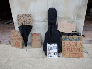 Porque fiz questão de marcar presença na concentração de apoio ao Es.col.a da Fontinha, em Coimbra, ontem, dia 20? Porque em Junho de 2011 tive oportunidade para passar alguns momentos na Fontinha e informar-me da acção em curso e reconheço o mérito do que ali está a ser feito. Por isso apenas posso manifestar repúdio e vergonha por situações como esta, sempre, em que uma CM cheia de técnicos supostamente bem preparados academicamente em matérias sociais de toda a ordem não sabe lidar com a população sem ser pelo uso da força e da destruição.