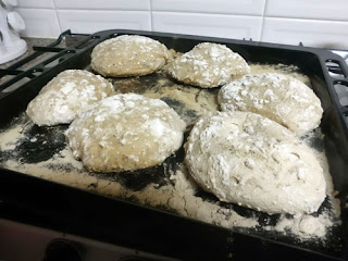 Farinha composta multi-cereais para usos culinários. É da Branca de Neve. Deve ser uma novidade! Ou talvez não, eu é que nunca olho muito para as prateleiras dos supermercados...É farinha de trigo com 15% de sementes diversas - aveia, linhaça, girassol, sésamo, milho miúdo e centeio, - mais farinha de aveia, de arroz, de malte e de centeio. O pacotinho diz que o conteúdo dá para fazer um pão de sementes com 750 gr. Mas eu fiz estes seis mais pequenos. A preparação é muito fácil. Eu não tenho máquina de fazer pão nem usei batedeira. Juntei a água morna e a farinha e misturei à mão durante 10 minutos. Não tenho força nenhuma nos braços e detesto amassar! Mas foi rápido, não custou nada! Depois embrulhei a taça com a massa numa mantinha e deixei repousar 45 minutos. De seguida polvilhei o tabuleiro do forno com farinha e coloquei aí os montinhos de massa. Usei uma espátula larga para tirar a massa pois ela pega-se mais às mãos do que à madeira. Depois esperei uma hora e foi ver os montinhos crescer!! No pacotinho diz que a massa duplica de volume. Parece que é verdade! O forno é pré-aquecido a 220º e os pães demoraram 35 minutos a cozer. Ficou um cheirinho a pão fresco no ar!! A meio da sessão da noite de cinema em casa parei a história e fui à cozinha. Abri um ao meio, quentinho ainda. Uma noz manteiga dentro e lá regressei eu ao sofá toda contente! Depois queixo-me que os jeans não servem...
