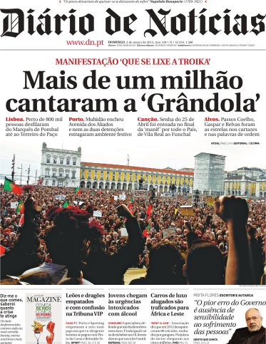 Não há português de 50 anos que não saiba a história da Grândola Vila Morena, um símbolo da Revolução dos Cravos e da abertura de Portugal à democracia em 1974. Houve duas senhas na Revolução. A primeira, às 23h, foi a música "E depois do adeus", de Paulo de Carvalho. Grândola, que foi a segunda, passou no programa "Limite" da Rádio Renascença às 0.20h do dia 25, e foi o sinal para o arranque das tropas mais afastadas de Lisboa e a confirmação de que a revolução estava em marcha. No último mês a conhecida canção de Zeca Afonso ganhou uma nova vida. Em Fevereiro de 2013, enquanto o primeiro-ministro Pedro Passos Coelho falava no debate quinzenal com os deputados, foi interrompido pelo movimento "Que se lixe a troika! Queremos as nossas vidas!" que cantou a Grândola como forma de protesto contra as políticas económicas deste Governo e da troika. Se para uns a cantoria na Assembleia da República foi um protesto cívico, criativo e justificável, próprio dos regimes democráticos, para outros não passou de um insulto à liberdade de expressão, uma forma indigna de usar esta canção. Mas desde então outros ministros têm sido alvo desta criativa manifestação de protesto e agora a canção foi cantada pela multidão, com grande emoção, no encerramento das manifestações do dia de ontem. O video é o desse momento na cidade do Porto, nos Aliados. Assistam, porque é esmagador. Também no portal norte-americano The World a Grândola Vila Morena é notícia por estar a ser pedida pelos ouvintes lusos residentes no Connecticut!! É caso para dizer, Viva a Grândola Vila Morena, viva o sonho! Não acham?