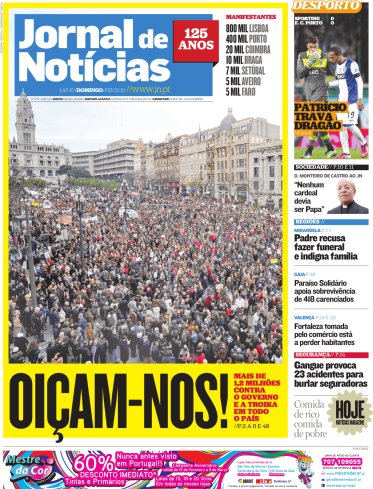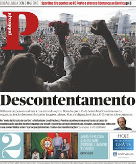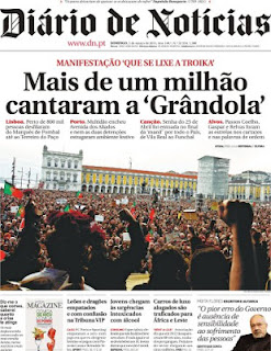 Mas algumas canções têm um simbolismo especial e colectivo. Ontem ouviu-se uma dessas canções nas ruas de Portugal, foi Grândola Vila Morena. A população portuguesa manifestou-se em peso contra a quebra do nível de vida devido às medidas de austeridade exigidas pelos credores internacionais do FMI (Fundo Monetário Internacional) e adoptadas pelo Governo. Nos anos 80, também se verificaram manifestações de descontentamento social, Portugal também vivia sob a influência de programas de ajustamento do FMI. 1983 e 1984, foram dois anos que ficaram marcados pelos acordos com o FMI e pelo agravamento extraordinário das condições de vida dos trabalhadores portugueses. Depois, a entrada na CEE - Comunidade Económica Europeia - traria ânimo e um projecto de esperança num futuro melhor para Portugal. Desde 1986 e até 1991 Portugal recebeu fundos estruturais da CEE destinados a modernizar o sector produtivo e assim combater a sua desigualdade face aos restantes membros europeus. É certo que a economia se desenvolveu, todavia o país nunca alcançou o desejável nivelamento com os seus congéneres, seja porque os fundos não foram aproveitados em pleno, seja porque temos estado entregues à má governação recorrente. Hoje, todavia, ter esperança na União Europeia transformou-se uma piada e embora muitos continuem a trabalhar no sonho europeu, outros sentem que a Europa se tornou uma madrasta, um monstro, a Europa mete medo.