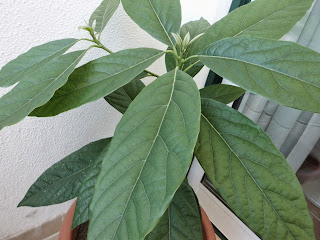 Lembram-se da minha semente de abacate? Prometi ir mostrando o crescimento da planta de abacate pelo que hoje aqui trago mais três fotografias. Está mesmo grande, não está? Agora começa a minha dúvida: até que ponto poderá crescer no vaso de maneira saudável? Será que as raízes ainda têm espaço para se expandir?! Será que a terra ainda tem nutrientes que cheguem?!! Parece que cultivar uma planta é uma coisa simples. Mas a verdade é que mais tarde ou mais cedo somos confrontados com questões. Ninguém nasce ensinado, essa é a verdade. Por exemplo, eu. Eu nada sei sobre plantas! Nunca tive um jardim e nem sou adepta de plantas de interior. Esta experiência foi muito engraçada pois vi a planta surgir do nada. Detestaria que ela definhasse e acabasse de morrer por não saber o que fazer, sobretudo depois de tanta espera para que germinasse! Por isso comecei a interrogar-me sobre o que é preciso fazer para lhe garantir boas condições. Desde saber quantas vezes se deve regar, se pode levar água nas folhas, se é melhor manter as folhas secas, se devo regar de manhã ou á noitinha...qual a quantidade de luz ideal, se directa se indirecta! Se devo usar vaso com furo se sem furo também serve! Se ela se dá bem com o calor, ou, pelo contrário, se é das que gostam do fresquinho! Se é preciso ou se há vantagem em juntar fertilizante na água...! A planta de abacate tem crescido e exceptuando aquele episódio das duas folhas com manchinhas, que ainda lá estão, não caíram, tudo parece ir bem. Já agora aqui deixo os links para as postagens anteriores, assim podem ver como tudo se passou!